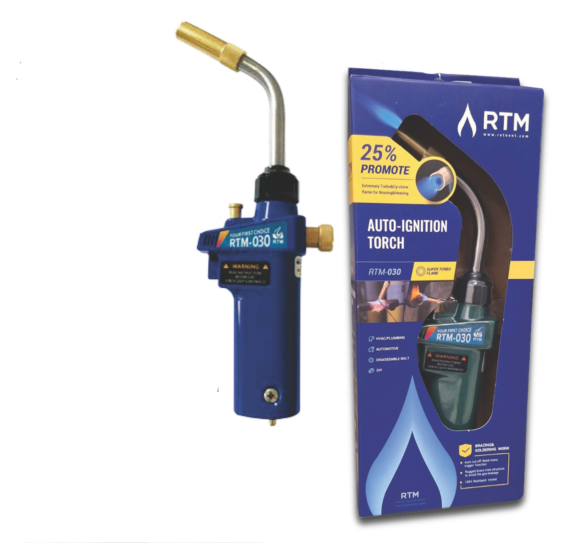 Brener je opremljen automatskim start/stop paljenjem sa trenutnim isključivanjem, kao i automatskim zaključavanjem plamena koje omogućava da gorionik ostane upaljen bez konstantnog držanja okidača. Turbo i vrtložni plamen obezbeđuju snažniju i ravnomerniju distribuciju toplote, idealnu za lemljenje, grejanje i druge termičke zahvate.