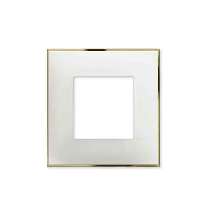 🖼️ Okvir/maska 4M za italijansku pravougaonu doznu ✨ Bela mat + zlatni ram – elegantan “premium” detalj 🧱 Savršeno poravnanje u zidu i gipsu (plasterboard) ↔️↕️ Montaža horizontalno ili vertikalno 📏 144.5 × 86 mm, dubina 9 mm 🏠 Ugradna montaža (flush), snap kačenje (engage) ⬜ Bela RAL 9003, mat završna obrada 🛡️ IP20 – za unutrašnju upotrebu ♻️ Termoplastika bez halogena