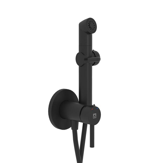 Set se sastoji od ručne higijenske tuš ručice, fleksibilnog tuš creva i zidnog držača, čime je obezbeđena potpuna funkcionalnost i jednostavna montaža. Higijenski tuš omogućava praktično održavanje lične higijene, a crna završna obrada daje prostoru luksuzan i moderan vizuelni identitet.