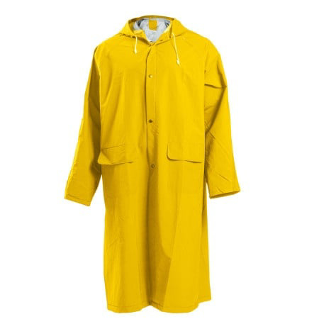 🧥 Kabanica od PVC-a i poliestera 🌧️ Potpuno vodootporna sa zaptivenim šavovima 🌬️ Ventilacija pod pazuhom i na leđima 🧢 Fiksna kapuljača sa učkama 📏 Dužina: 120 cm 💛 Boja: žuta 📐 Veličina: L 🏗️ Pogodna za građevinu, industriju i poljoprivredu 👷♂️ Preporučena zanimanja: armirači, bravari, električari, moleri, vodoinstalateri, zidari i dr.