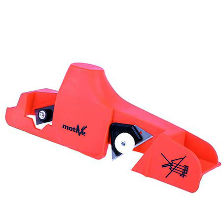 Opremljeno je sa **dva oštra sečiva** — prednje, koje je **podesivo u opsegu od 9,5 do 15 mm**, i zadnje, **fiksno postavljeno pod uglom od 45°**, čime se obezbeđuje savršena preciznost i jednak rez prilikom svakog prolaza.