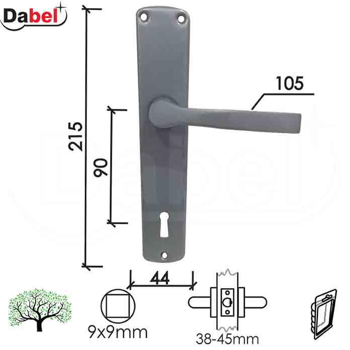 Kvaka šild za vrata DABEL CER siva 90/44/215/7/105/9 mm ključ 0101898