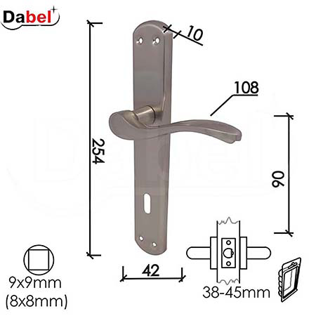 Kvaka štit za vrata DABEL JELENA brušeni nikl 90/42/254/10/108/8/9 mm ključ 0101095