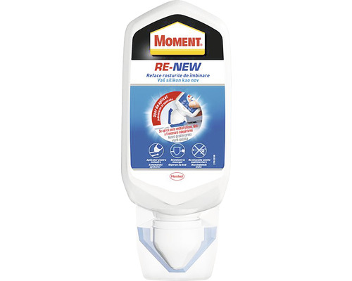 Moment ReNew silikon obnavljajući 80 ml predstavlja **brzo i jednostavno rešenje za obnovu starih silikonskih spojeva** u kupatilu i kuhinji. Ovaj silikon obezbeđuje **dugotrajnu zaštitu od buđi**, vlagе i prljavštine, stvarajući čist i higijenski spoj bez potrebe za uklanjanjem starog silikona.