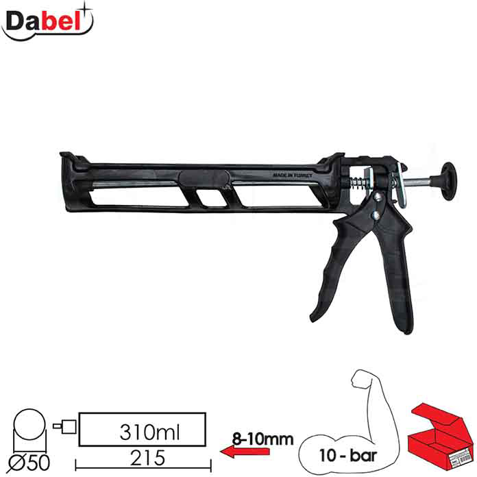 -Pištolj za ekstrudiranje, -Metalna konstrukcija -Hromirana, šipka za bolje pomeranje tokom ekstruzije, -Upotreba: za istiskivanje zaptivnih masa i lepkova u patronama od 345 ml.