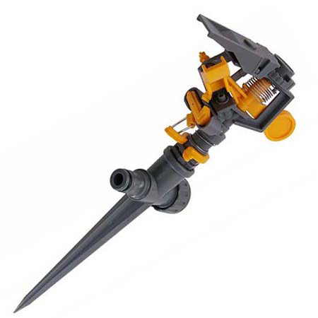 Prskalica je opremljena plastičnim šiljkom koji omogućava lako i stabilno postavljanje u zemlju. Laka plastična konstrukcija omogućava jednostavno rukovanje i brzo premeštanje po potrebi.