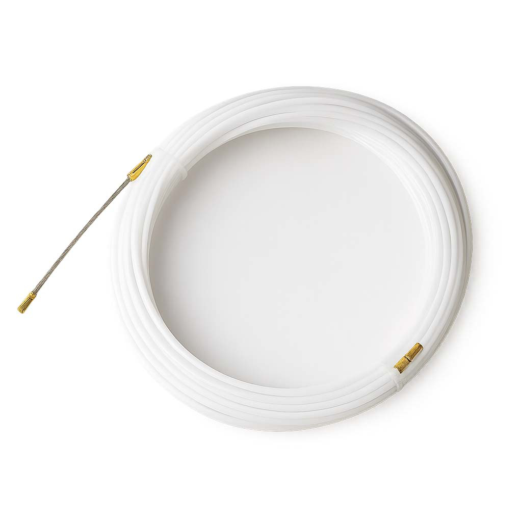 Opremljena je zamenjivim glavama – jednom sa alkom za kačenje i drugom sa vođicom u obliku opruge, što olakšava provlačenje kablova kroz cevi i kanale. Prečnik sajle je Ø 4 mm, dok metalni vrh ima Ø 5 mm. Bela boja omogućava bolju preglednost tokom upotrebe.
