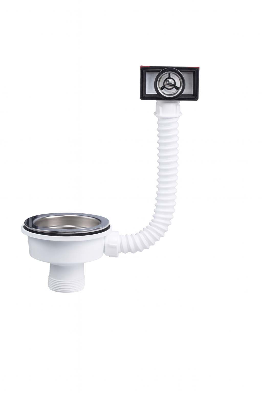 🛁 Fleksibilni sifon za jednodelnu sudoperu Ø90 🌀 PVC cev Ø40 mm glatka iznutra, spiralna spolja 🛡️ Rešetkasti umetak sa funkcijom čepa 💧 Prelivno grlo sa zaptivnom gumicom 🔧 Adapter 40 mm za Ø50 mm i 29/32 mm za 5/4" cev