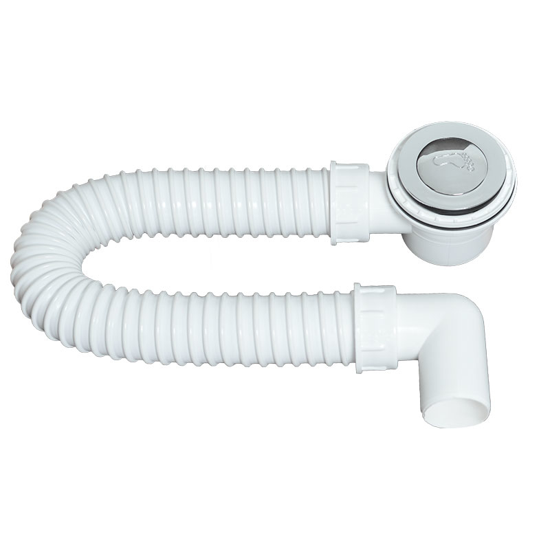 🚿 Fleksibilni niski sifon za tuš kadu 🌀 PVC cev Ø40 mm glatka iznutra, spiralna spolja ⚙️ Click-Clack odvodni sistem od ABS plastike 🔧 Adapter 40 mm za Ø50 mm i 29/32 mm za 5/4" cev